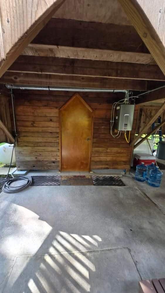 Underneath the cabin is a loveseat, which our guests say is the perfect place to sit and enjoy the magical rainfall. There’s also a washer/dryer if it’s time to get some laundry done. Or venture out to the gazebo where you’ll find a place to grill and enjoy eating outdoors.