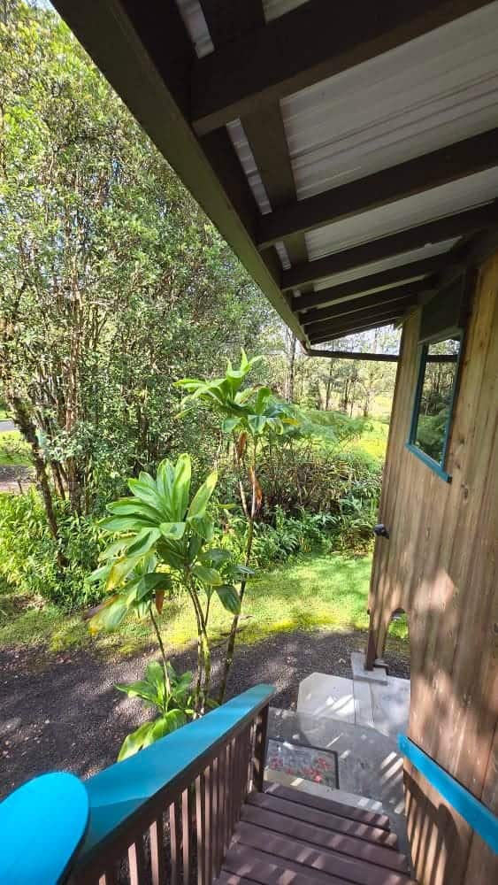 The two cabins are privately situated on 1.57 acres and surrounded by nature, with native Ohia trees, Hapuu tree ferns, guava trees, orchids and anthuriums and of course – even a few Norfolk pine trees. There’s ample free parking just outside on a well-maintained gravel driveway. A separate, identical dwelling (the anthurium cabin) is also on the property, but there’s good privacy between the two. The cabins are on-grid for electricity and have efficient rainwater harvest systems, along with complimentary drinking water provided.