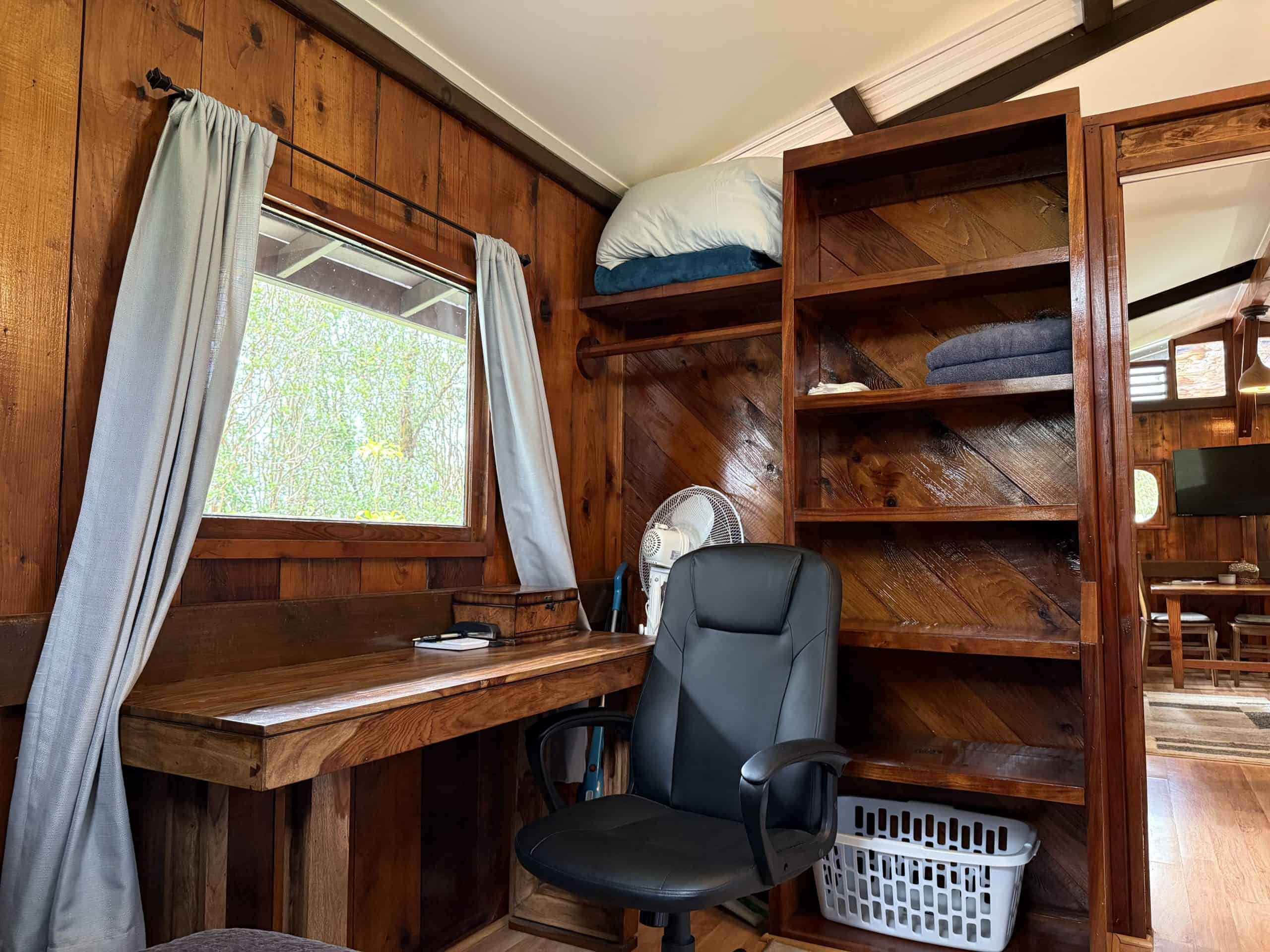 The cabin is private, quiet, and surrounded by nature, with free parking just outside on a well-maintained gravel driveway. There is a separate, identical cabin on the property, but privacy between the two. The cabins are on-grid and have efficient rainwater harvest systems, along with complimentary drinking water.